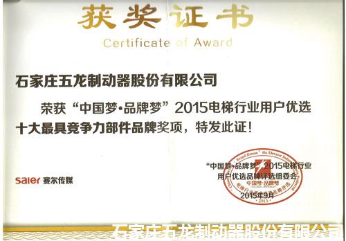 “五龍制動(dòng)器”十大最具競(jìng)爭(zhēng)力部件品牌