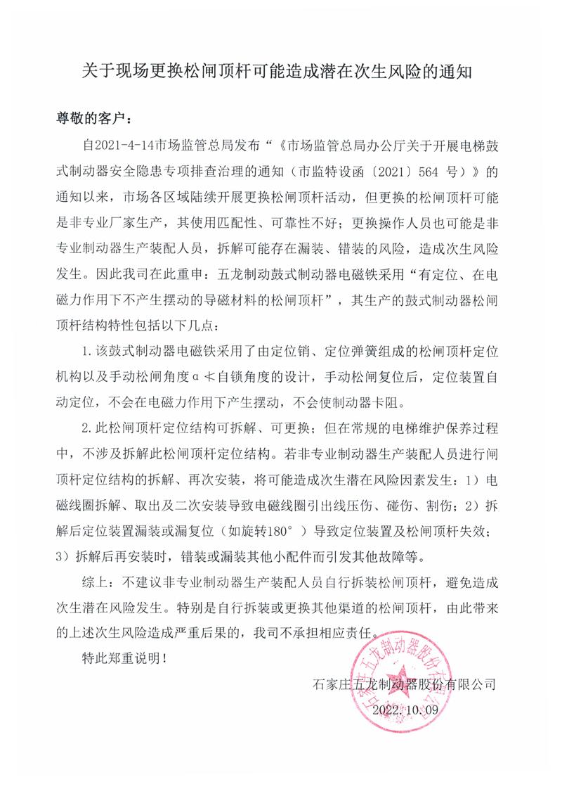 重申:關(guān)于現(xiàn)場更換松閘頂桿可能造成潛在次生風(fēng)險的通知