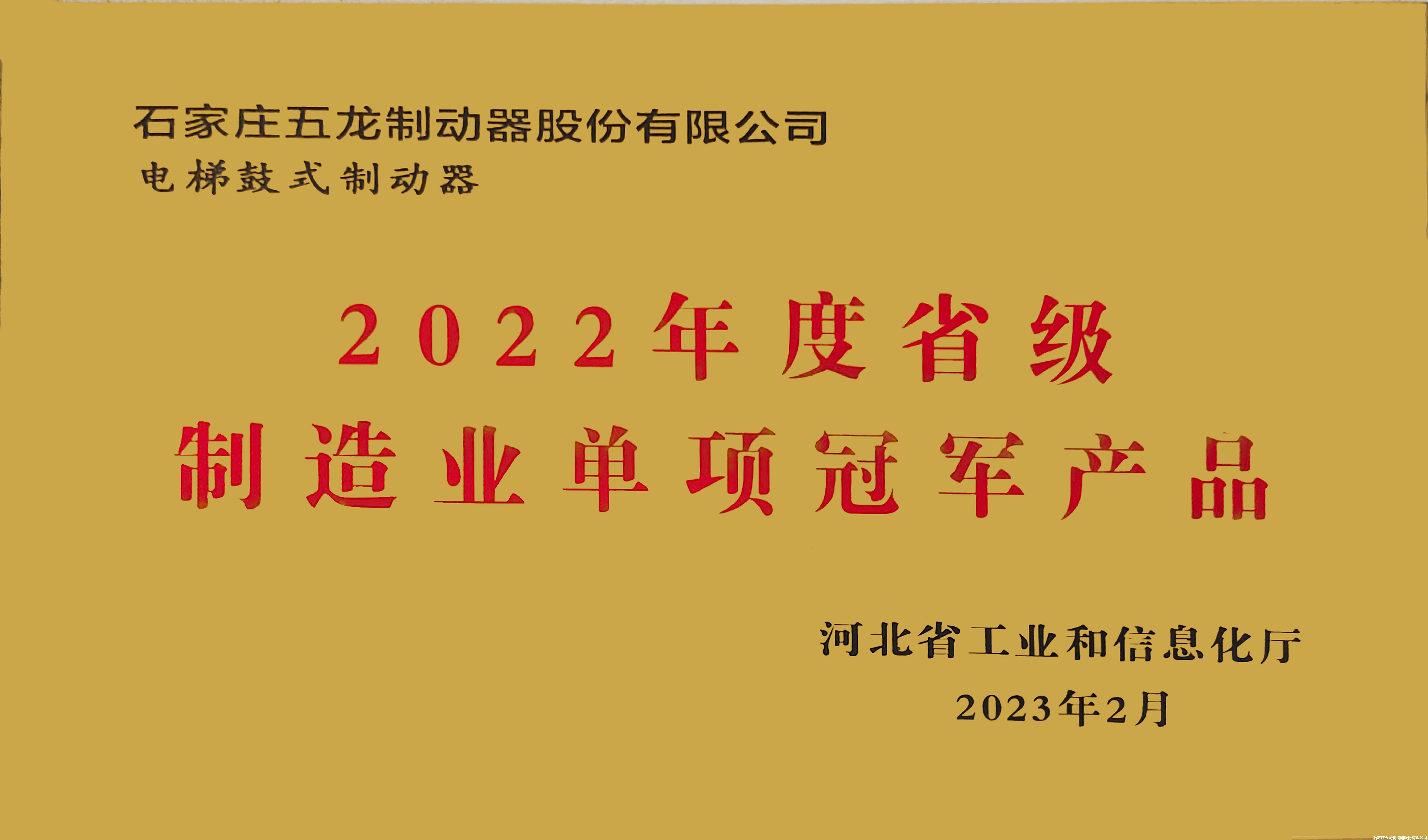 恭喜石家莊五龍制動(dòng)器股份有限公司獲評(píng)由河北省工業(yè)和信息化廳頒發(fā)的《2022年度省級(jí)制造業(yè)單項(xiàng)冠軍產(chǎn)品》稱號(hào), 這是五龍制動(dòng)提升核心競(jìng)爭(zhēng)力的又一殊榮。