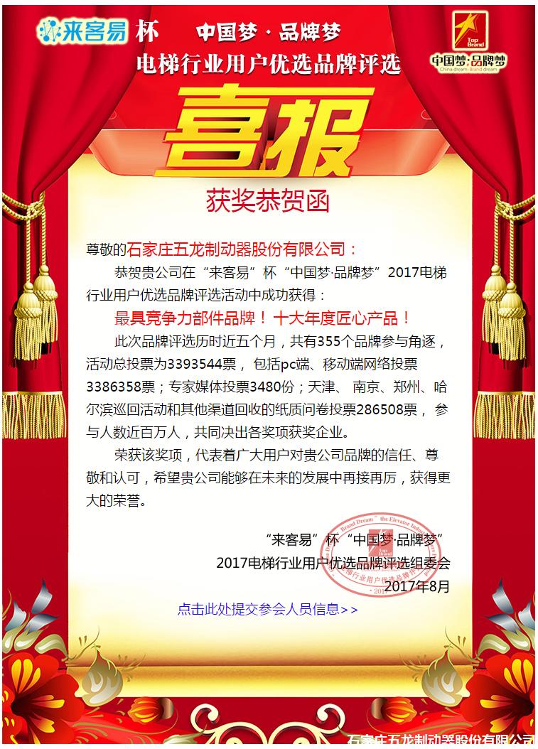 五龍獲2017最具競爭力部件品牌!十大年度匠心產(chǎn)品!