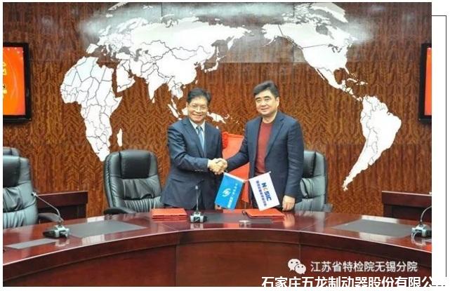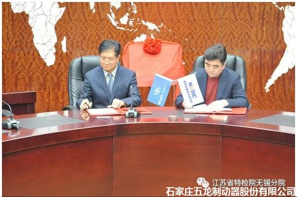 石家莊五龍制動器股份有限公司董事長韓伍林、江蘇省特檢院黨委委員、無錫分院院長孫小偉、百堅毅副院長、無錫分院科技部周華部長、國起中心負責人蘇文勝博士等出席了簽約儀式。