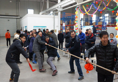 員工迎春活動分五項(xiàng)PK賽,由兩位副總分別帶領(lǐng)A、B兩隊(duì)進(jìn)行團(tuán)體撥河、團(tuán)體踢鍵子、團(tuán)體跳繩、團(tuán)體托乒乓球接力賽跑、團(tuán)體齊心協(xié)力賽。