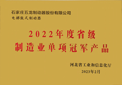 2022年度省級制造業(yè)單項冠軍產(chǎn)品