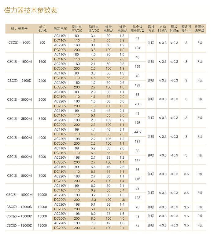 2、 磁力器的推力范圍:600N~18000N;